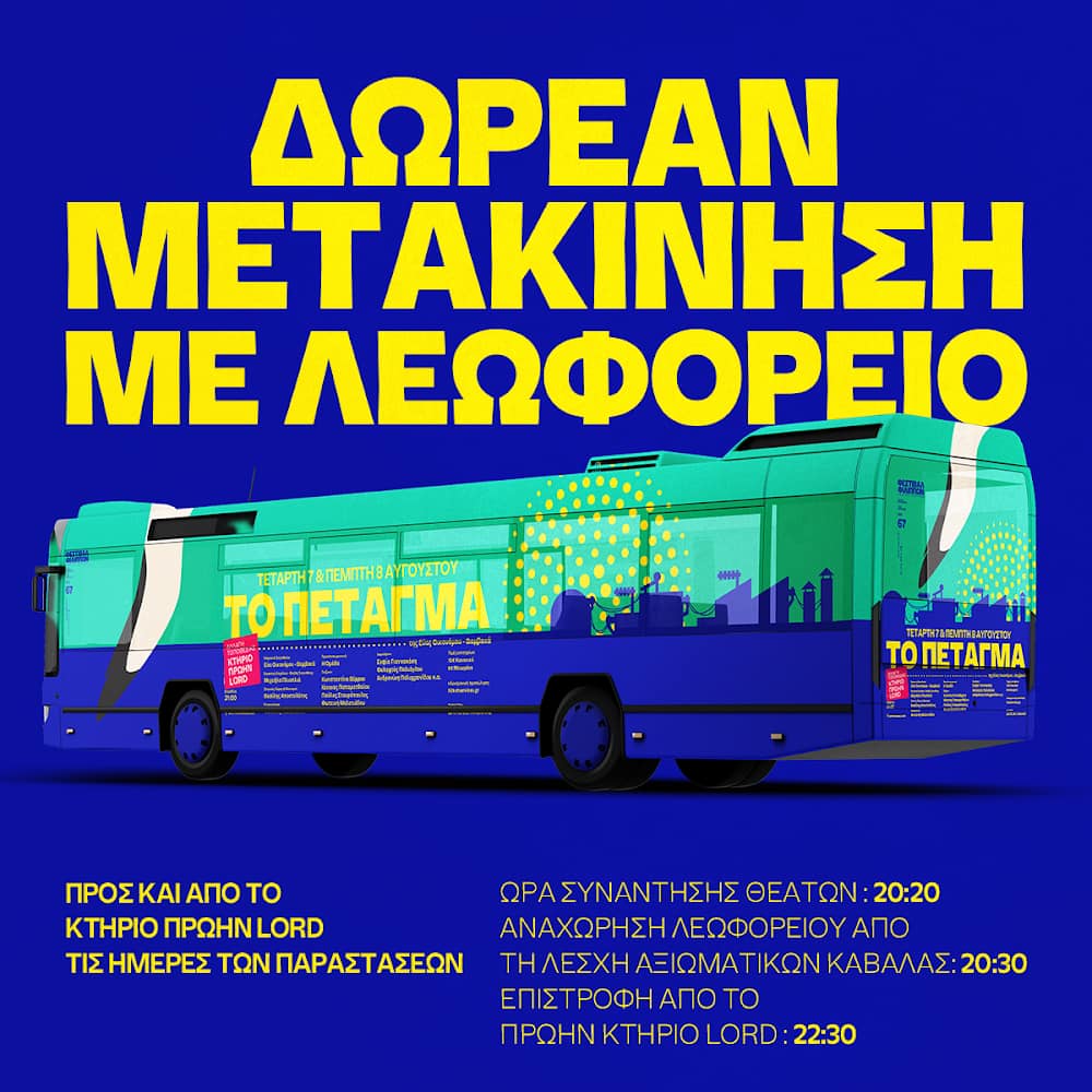 Για την καλύτερη εξυπηρέτηση του κοινού, θα υπάρχει δωρεάν μετακίνηση με λεωφορείο του αστικού ΚΤΕΛ προς και από το κτήριο πρώην Lord τις ημέρες των παραστάσεων.