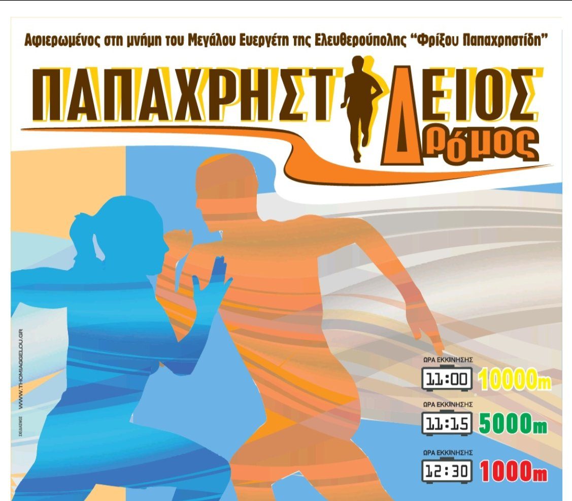 Αγώνας δρόμου στο Δήμο Παγγαίου στη μνήμη του ευεργέτης της περιοχής Φρίξου Παπαχρηστίδη. 2 Μαρτίου, 2026 - Ο Δήμος Παγγαίου, σε συνεργασία με τον ΟΚΑΚ και με την υποστήριξη της ΕΑΣ ΣΕΓΑΣ Αν. Μακεδονίας-Θράκης, διοργανώνουν τον 9ο αγώνα δρόμου σε δημόσια οδό στη μνήμη του μεγάλου ευεργέτη της περιοχής, Φρίξου Παπαχρηστίδη. ΗΜΕΡΟΜΗΝΙΑ ΔΙΕΞΑΓΩΓΗΣ: 22 Μαρτίου 2025 ΑΦΕΤΗΡΙΑ-ΤΕΡΜΑΤΙΣΜΟΣ: Οδός Περδίκα (όπισθεν του Οικοτροφείου) Ελευθερούπολη ΑΠΟΣΤΑΣΗ ΑΓΩΝΩΝ: 10km-5Km-1Km ΔΙΑΔΡΟΜΗ: Κυκλική μέσα… Περισσότερα