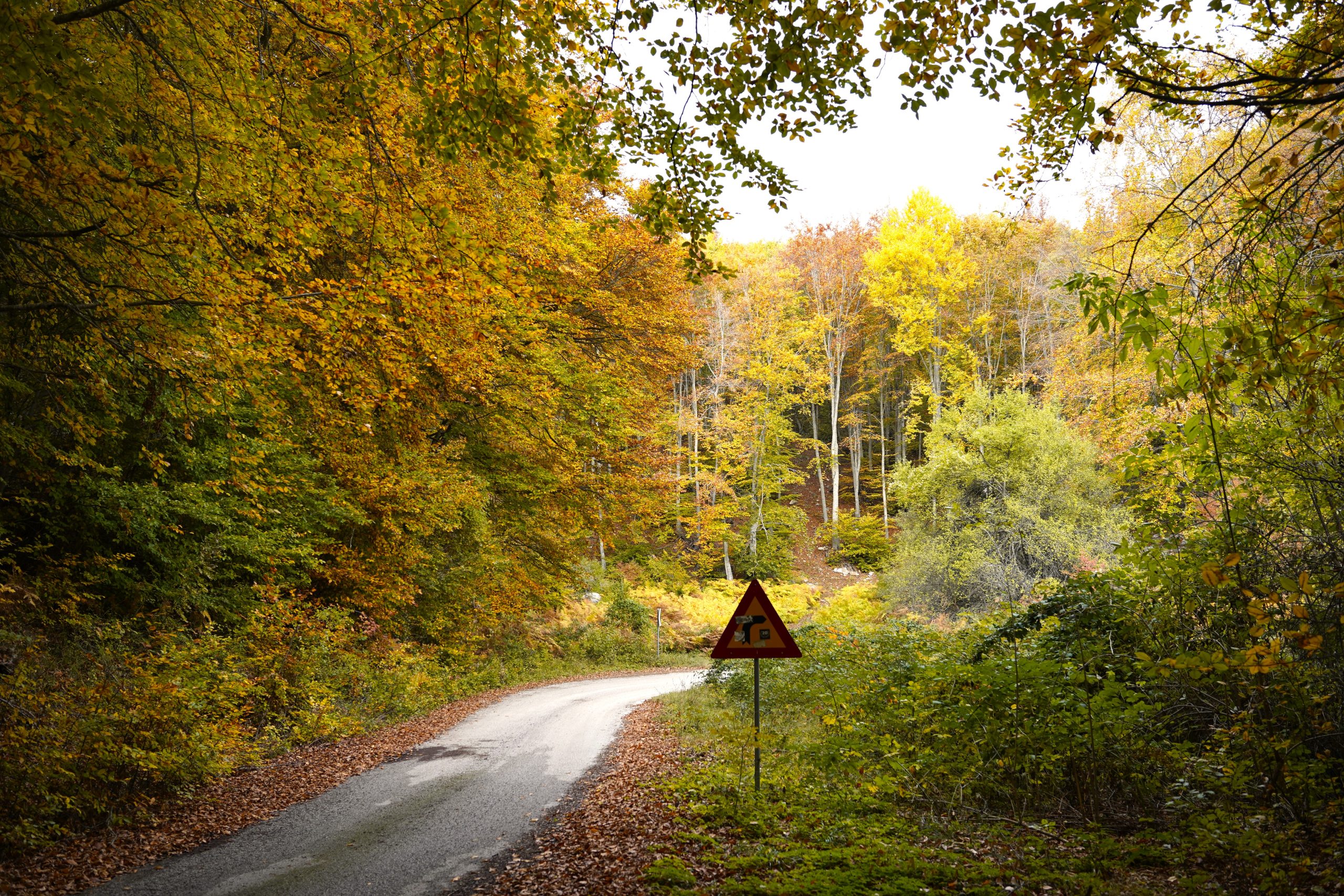 Όπως αποτυπώνεται και σε αυτές τις φωτογραφίες, η εποχή προσφέρει μία αίσθηση ηρεμίας και μυστηρίου. Τα μονοπάτια και οι δρόμοι, όπως αυτό εδώ, στρώνονται με ένα παχύ, χρυσαφένιο χαλί από πεσμένα φύλλα, προσκαλώντας σε πεζοπορίες και εξερευνήσεις. Το θρόισμα των φύλλων κάτω από τα πόδια γίνεται το soundtrack της φύσης, ενώ η υγρασία του δάσους φέρνει μαζί της τη γλυκιά μυρωδιά του χώματος και του μανιταριού.
