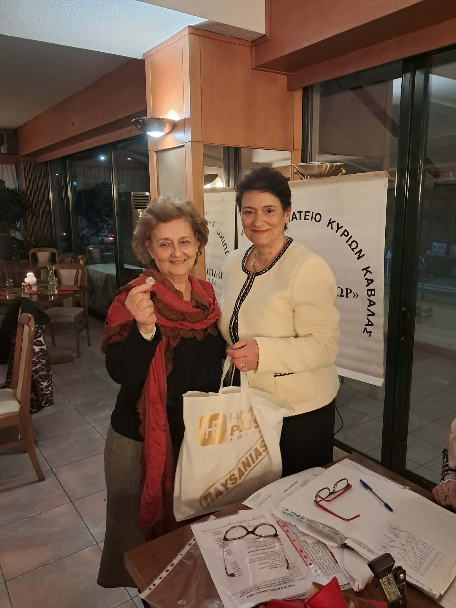 Η τυχερή του απογευματινού στην πίτα των προσκεκλημένων ήταν η Αντιδήμαρχος Καβάλας Κα Έλσα Βακιρτζή και στα πιττάκια ήταν το μέλος Κα Μαργαριτοπούλου Σοφία.