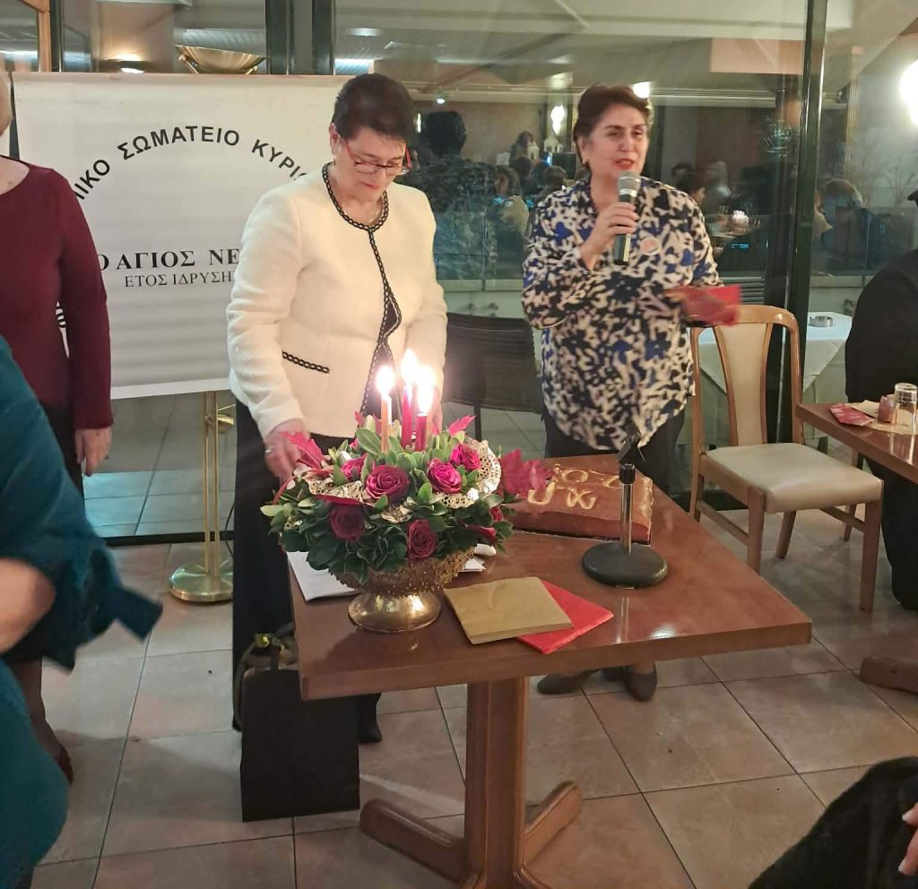 και να κόψει την βασιλόπιτα.Ο π. Παναγιώτης Τσακίρης ευχήθηκε στις κυρίες του Δ.Σ., στα μέλη του Σωματείου και στις φίλες και τους φίλους που παρευρίσκοντο, καλή, δημιουργική και ευλογημένη να είναι η νέαχρονιά.