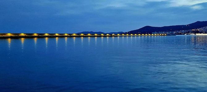 Επιπλέον, έχει ολοκληρωθεί η τοποθέτηση των φωτιστικών σωμάτων και ο φωτισμός του στενού τμήματος του μόλου και η αγκύρωση των χαλύβδινων διατομών ανάρτησης, η τοποθέτηση των εφτά (7) προσκρουστήρων και οι σκυροδετήσεις τόσο του κρηπιδότοιχου όσο και του οδοστρώματος περίπου στο μισό του συνολικού μήκους του στενού τμήμτος του μόλου.