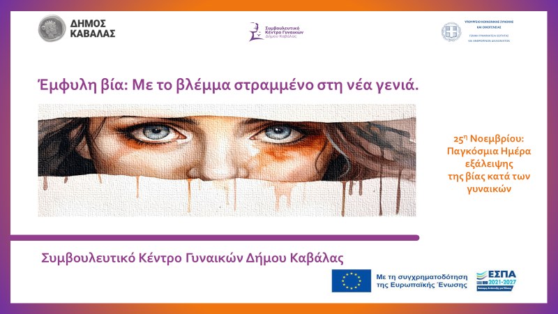 Η πράξη με τίτλο “Συνέχιση Λειτουργίας Κέντρου Συμβουλευτικής Υποστήριξης γυναικών θυμάτων βίας Δήμου Καβάλας” εντάσσεται στο πρόγραμμα “Ανατολική Μακεδονία, Θράκη 2021-2027” και συγχρηματοδοτείται από το ΕΚΤ+.
