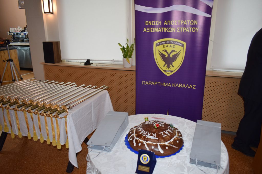 Την Κυριακή 01 11:00 Φεβρουαρίου 2026, το Παράρτημα Καβάλας της Ενώσεως Αποστράτων Αξιωματικών Στρατού (ΕΑΑΣ) έκοψε τη βασιλόπιτά του, βράβευσε τα τέκνα των μελών του Παραρτήματος που αρίστευσαν στη Β ́ και Γ ́ Λυκείου τη σχολική χρονιά 2024 – 2025 και επέδωσε ξίφη σε Αξιωματικούς μέλη του, προερχομένους εξ υπαξιωματικών οι οποίοι δεν παρέλαβαν κατά τη διάρκεια της υπηρεσίας τους.