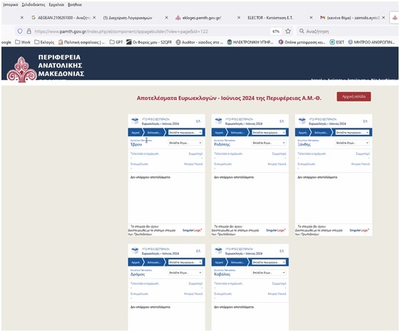 Σας ενημερώνουμε ότι το βράδυ των εκλογών της 9ης Ιουνίου 2024 η Περιφέρεια ΑΜΘ θα προβάλει στην ιστοσελίδα της: www.pamth.gov.gr, τα αποτελέσματα, για κάθε Περιφερειακή της Ενότητα, που θα προέρχονται από το Υπουργείο Εσωτερικών μέσω του IFrame των Εκλογικών Αποτελεσμάτων που έχει υλοποιήσει η Διεύθυνση Διαφάνειας & Ηλεκτρονικής Διακυβέρνησης. Επίσης θα υπάρχει και η δυνατότητα ενημέρωσης των αποτελεσμάτων σε επίπεδο Δήμου και Δημοτικής Ενότητας. Όσων αφορά την αναλυτική ενημέρωση των εκλογικών αποτελεσμάτων σε επίπεδο τμήματος, θα πραγματοποιηθεί σε δεύτερο χρόνο με την ολοκλήρωση της εκλογικής διαδικασίας στην ιστοσελίδα μας ekloges.pamth.gov.gr. Υπενθυμίζουμε ότι σύμφωνα με την εγκύκλιο 31 του ΥΠΕΣ προηγείται η μετάδοση των αποτελεσμάτων υπέρ συνδυασμών προς το Υπουργείο. Σε κάθε περίπτωση τα αποτελέσματα αυτά θα ελεγχθούν στη συνέχεια από τα αντίστοιχα Πρωτοδικεία τα οποία έχουν και την ευθύνη ανακοίνωσης των τελικών και επίσημων αποτελεσμάτων.