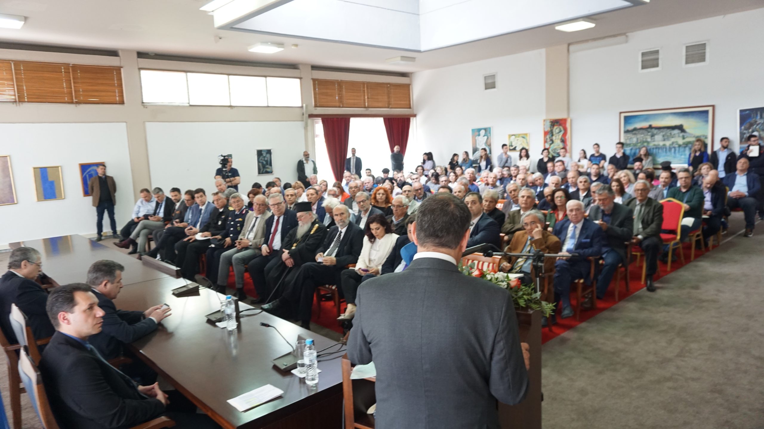 Στην εκδήλωση μίλησαν ο Πρόεδρος του Society Petroleum Engineers – Kavala Section, Αν. Καθ. κ. Ν. Κόκκινος, ο Πρύτανης του ΔΙΠΑΕ, Ομ. Καθ. κ. Αθ. Καΐσης. Χαιρέτισε την εκδήλωση ο Πρόεδρος του SPE International, κ. Med Kamal. Τον τιμώμενο Υπουργό παρουσίασε ο Κοσμήτορας της Σχολής Θετικών Επιστημών της Πανεπιστημιούπολης Καβάλας, Καθ. κ. Αθ. Μητρόπουλος, ο οποίος αναφέρθηκε στο βιογραφικό και στο έργο του σχετικά με τις στρατηγικές και γεωστρατηγικές αμυντικές συμφωνίες της Ελλάδος.
