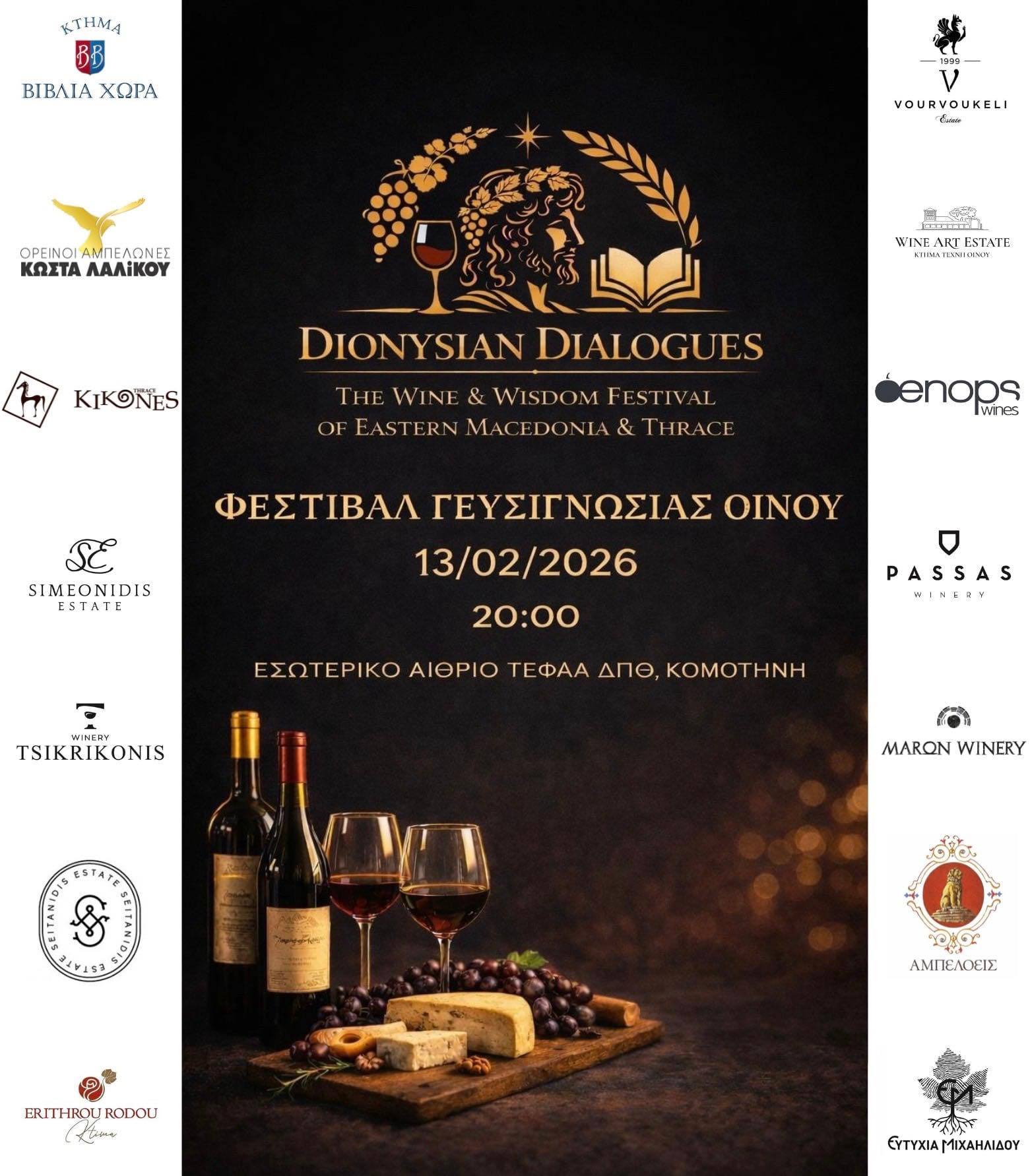 Η βραδιά θα ολοκληρωθεί με μια ξεχωριστή γιορτή των αισθήσεων. Στις 20:15, θα πραγματοποιηθεί το «Dionysian Dialogues: The Wine & Wisdom Festival of Eastern Macedonia & Thrace».