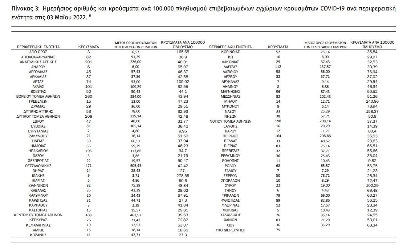 Οι νέοι θάνατοι ασθενών με covid-19 είναι 39, ενώ από την έναρξη της επιδημίας έχουν καταγραφεί συνολικά 29.249 θάνατοι. Το 95,5% είχε υποκείμενο νόσημα ή/και ηλικία 70 ετών και άνω
