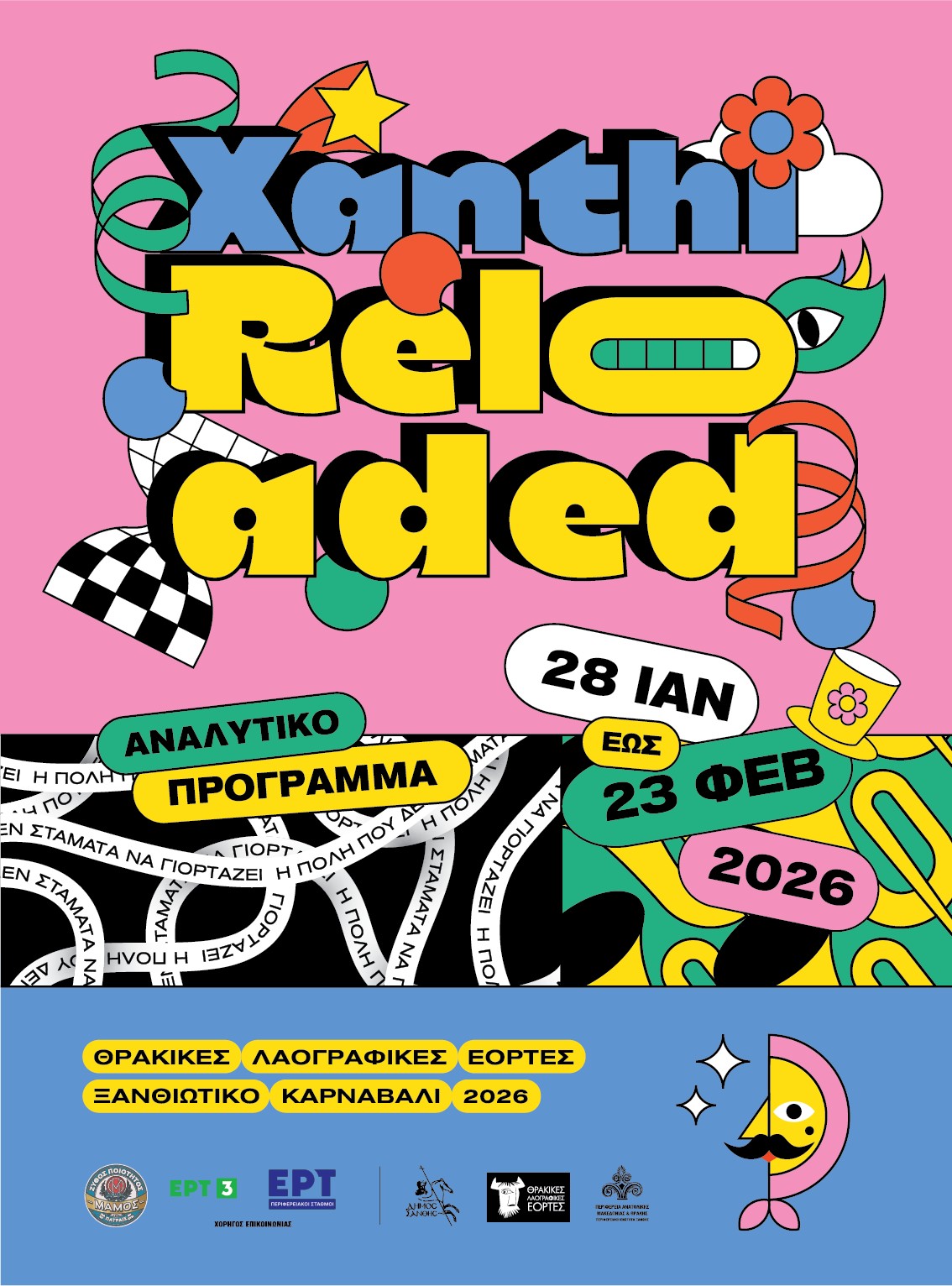 Ο Δήμος Ξάνθης παρουσιάζει σήμερα την επίσημη αφίσα και το πλήρες πρόγραμμα των Θρακικών Λαογραφικών Εορτών – Ξανθιώτικο Καρναβάλι 2026, δίνοντας το έναυσμα για τη μεγάλη γιορτή της πόλης. Με κεντρικό μήνυμα «ΞΑΝΘΗ RELOADED – Η πόλη που δεν σταματά να γιορτάζει», η φετινή διοργάνωση παρουσιάζει το νέο της πρόσωπο, συνδέοντας σταθερά την πολυετή παράδοση του θεσμού με τη σύγχρονη δημιουργία και τη δυναμική της εξωστρέφειας.