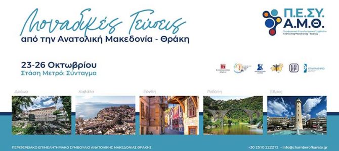 Τα εφτά Επιμελητήρια της Ανατολικής Μακεδονίας και Θράκης, μέσω του συλλογικού τους οργάνου, του Περιφερειακού Επιμελητηριακού Συμβουλίου ΑΜΘ (ΠΕΣΥ), διοργανώνουν για ακόμη μια χρονιά την Έκθεση Τροφίμων και Ποτών «Μοναδικές Γεύσεις από την Ανατολική Μακεδονία και Θράκη», η οποία θα πραγματοποιηθεί στον χώρο του Μετρό Συντάγματος στην Αθήνα, από τις 23 έως τις 26 Οκτωβρίου 2025.