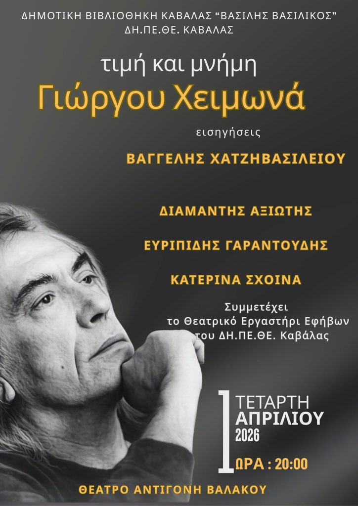 Η πόλη της Καβάλας τιμά τη μνήμη και το έργο του σπουδαίου δημιουργού, μέσα από μία εκδήλωση αφιερωμένη στη λογοτεχνική του προσφορά.